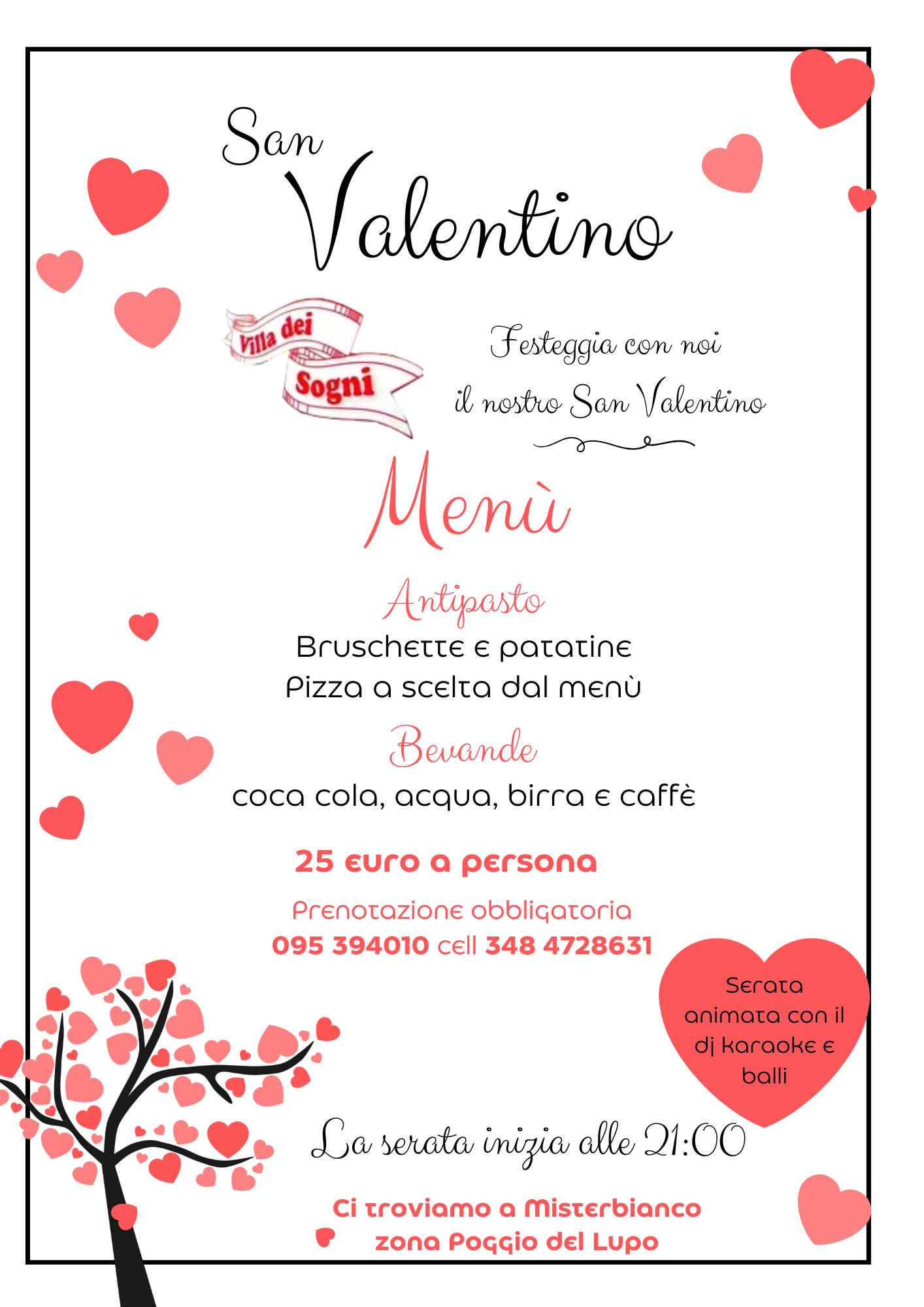 Villa dei Sogni propone presso il ristorante serate a tema con musica live, piano bar e cantanti con ottimi piatti della cucina tipica siciliana e, il sabato sera, pizze cotte in forno a legna.