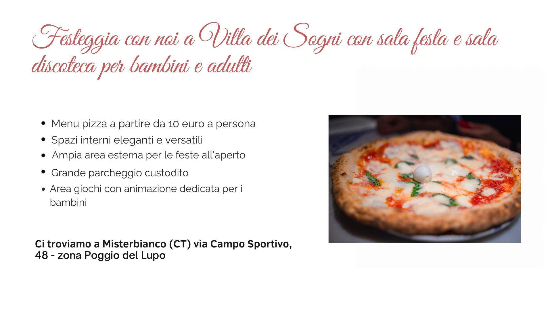Villa dei Sogni - Ristorante e pizzeria : organizza il tuo Evento!